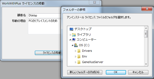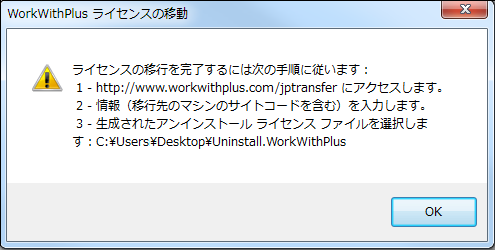 アンインストールファイル: 先にアンインストールしたライセンスファイルです (手順 2)。