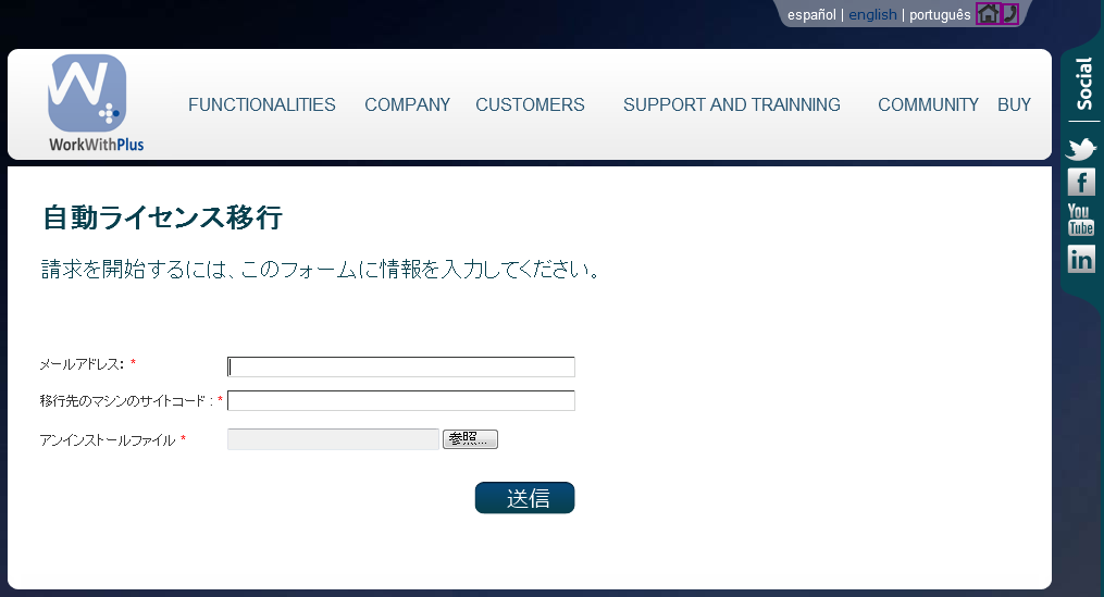 4.1 - www.workwithplus.com/jptransfer に移動し、必要な情報を入力して、[送信] をクリックします: