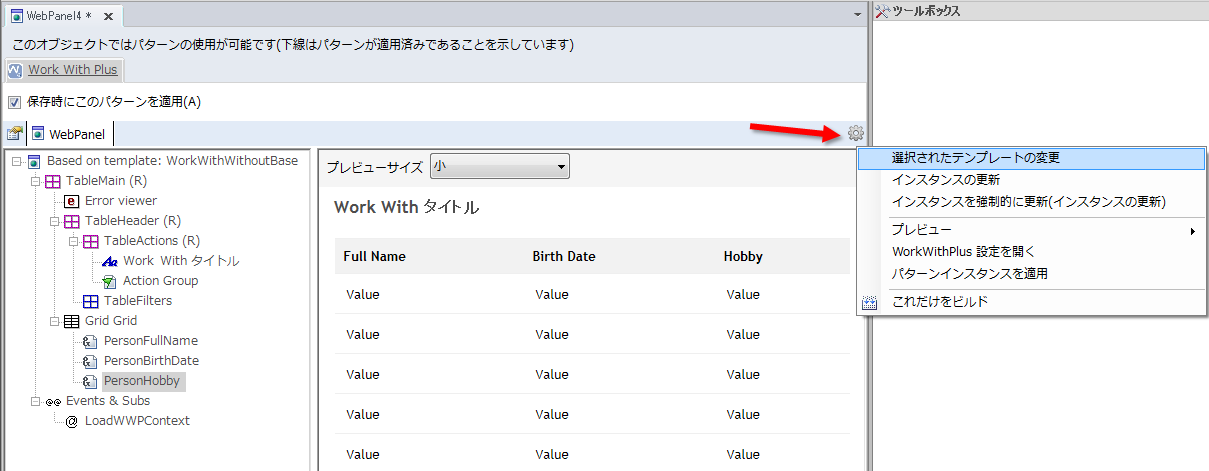これは、すでに特定のテンプレートに基づいて Web パネルを作成していて、その Web パネルが基づいているテンプレートを変更する必要がある場合にも適用されます。