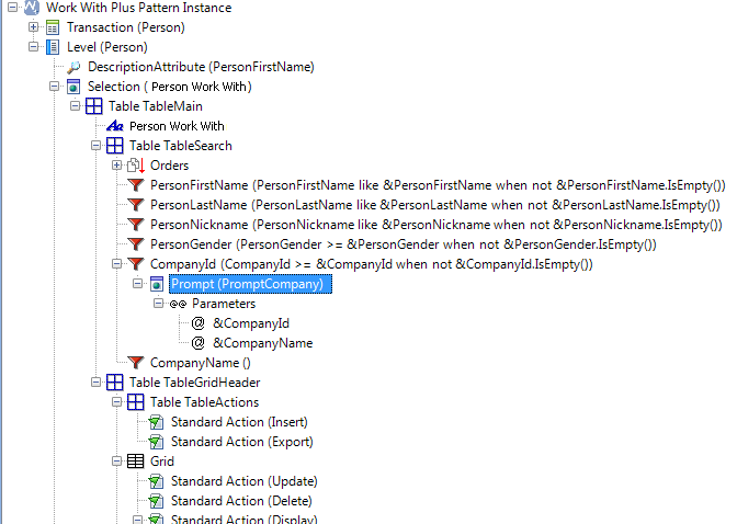 実行時、[Company] フィールドの横に表示されるプロンプト画像内をクリックすると、オブジェクト PromptCompany が表示されます: