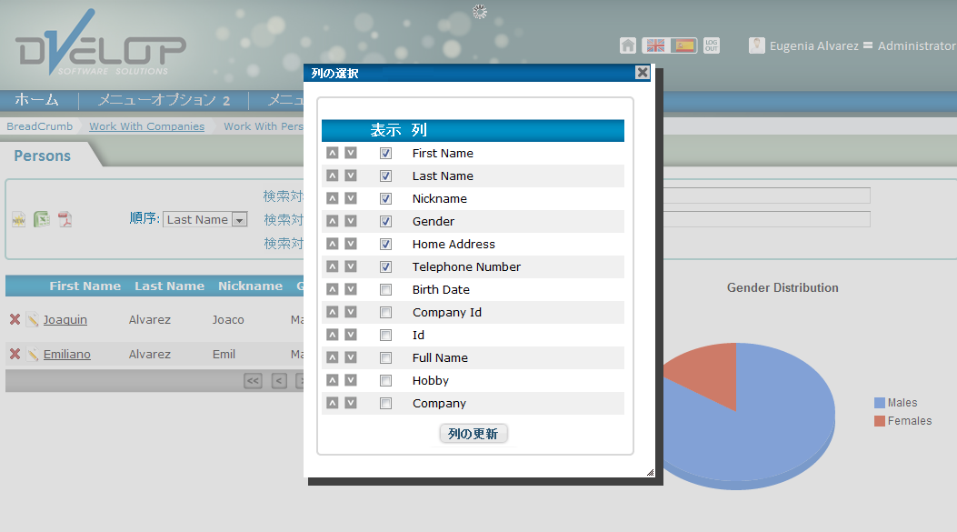 ColumnsSelector のある Selection オブジェクト