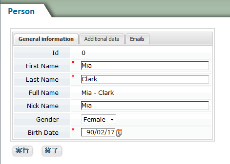 既定で WorkWithPlus によって作成される外観や操作感を、次の図に示します。また、www.workwithplus.com/example で、パターンによって提供される機能や、既定の外観や操作感を含むアプリケーションの例にアクセスできます。