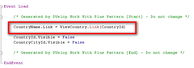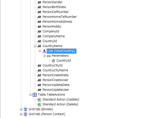 上の例は、GeneralPerson オブジェクトのイベント内に、リンクのコードが追加されたことを示しています: