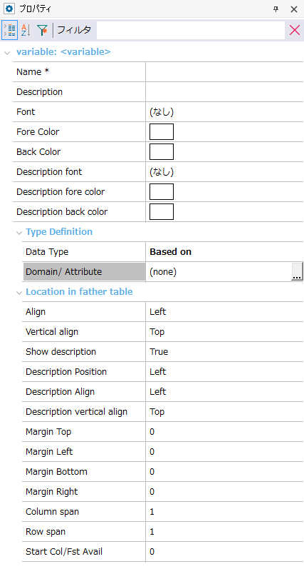 レポートの [Variable] ノードには、次のプロパティがあります:
