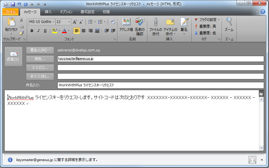 セットアップを実行した後、[Full キー リクエスト] をクリックすると、ウィザードが開き次の情報が表示されます。