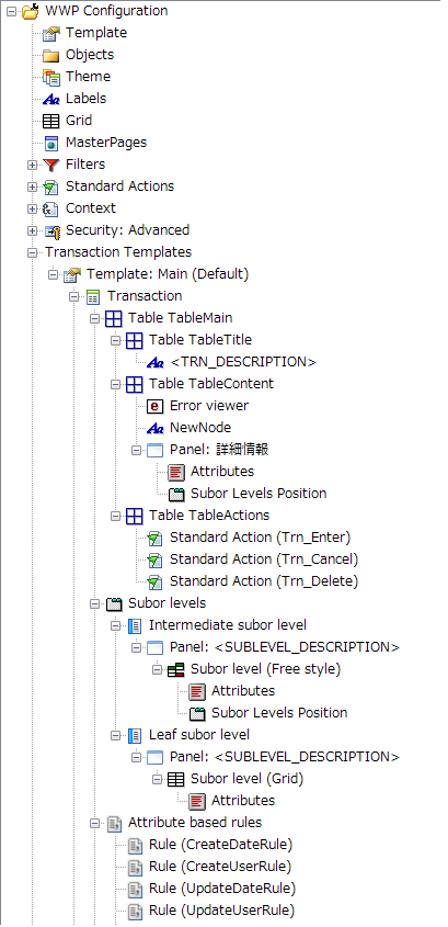 [Name]: ルールの名前です。このプロパティは、インスタンスの更新処理のインスタンストランザクション内でこのノードを識別するために必要です。 [Rule]: トランザクションに表示されるルールです。ルールには、次のタグを含めることができます: <TRN_NAME>、<TRN_DESCRIPTION>、<ATT_NAME>、および <ATT_DESCRIPTION>