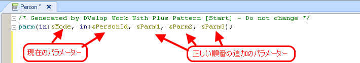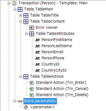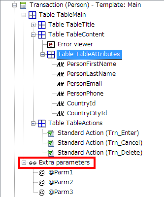 次の例のように、このノードの目的は、インスタンス内の事前設定されたパラメーターの後に挿入されるのと同じ順番でトランザクションの parm ルール内に追加される追加パラメーターをグループ化することであるため、プロパティがありません: