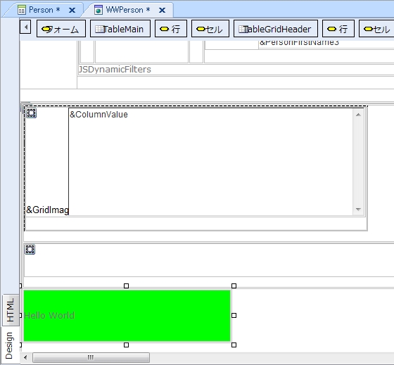 パターンをもう一度適用した後、テーブルの内容が維持されていることと、テーブルによってフォーム上でのレイアウトがインスタンス内で設定されたプロパティの位置に変更されたことを検証するために、WWPerson オブジェクトを開きます。