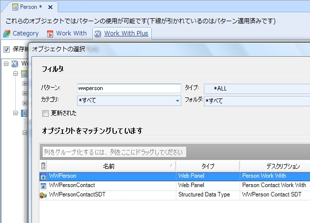 この後、パターンを再度適用して、WWPerson オブジェクトを開きます。