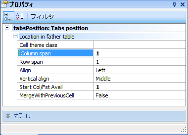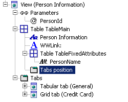 [Tab Position] ノード [Tabs Position] ノードの目的は、View オブジェクトのフォーム内にタブのレイアウトを指定することです。 [Tabs Position] ノードには、次のプロパティがあります: [Location in father table] プロパティの詳細については、次のリンクを参照してください: [Location in father table] - 詳細 <