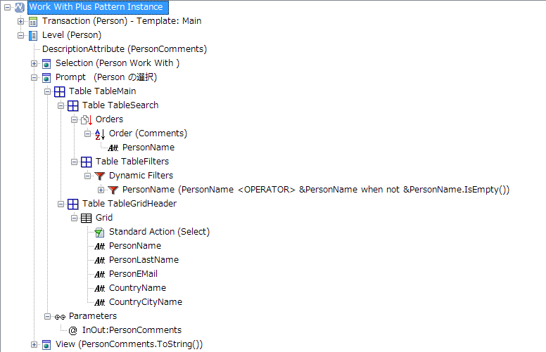 WorkWithPlus では、トランザクションおよびその対応するレベルに関連付けられた Prompt オブジェクトを生成する機能が提供されます。これらは、トランザクションのパターンインスタンス内で新しいノードとして示されます。既定では、Work With Plus によって各トランザクションのレベルに 1 つの Prompt が生成されます。Prompt を呼び出すルールは、ユーザーが開発する必要があります。